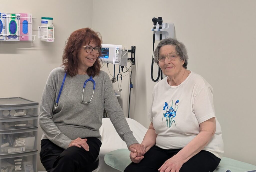 Nurse Practitioner Melody Fox with peopleCare Meaford LTC resident in the wellness centre